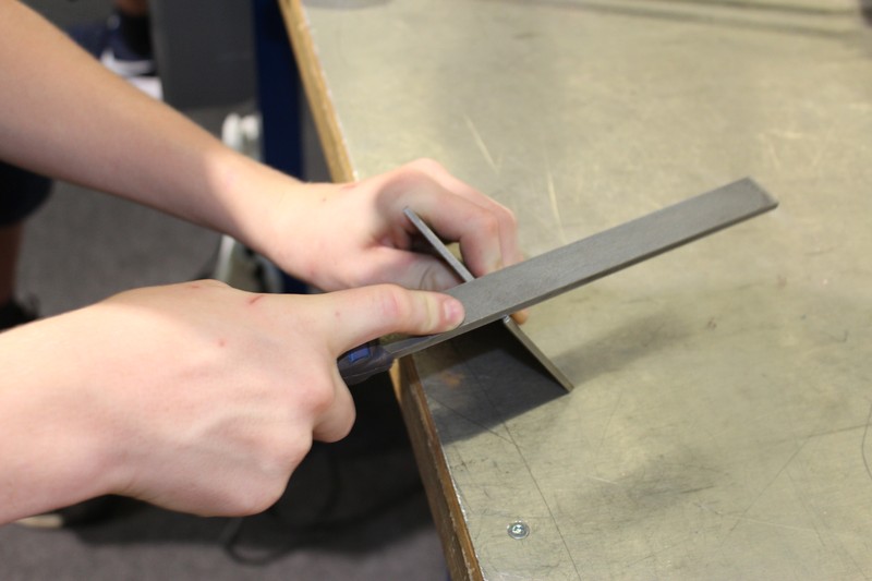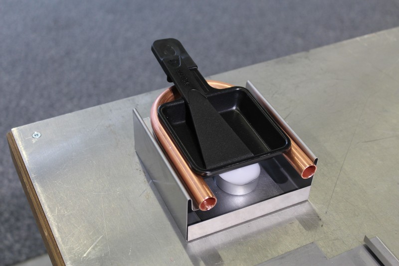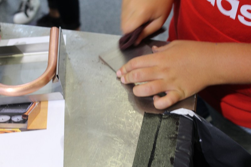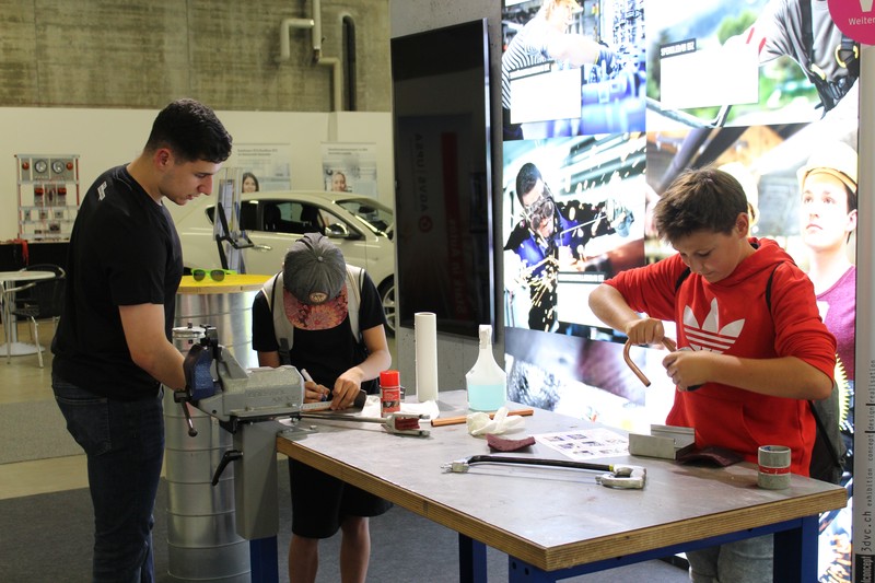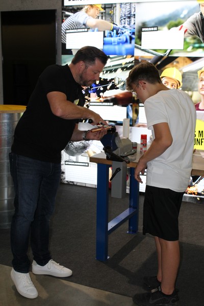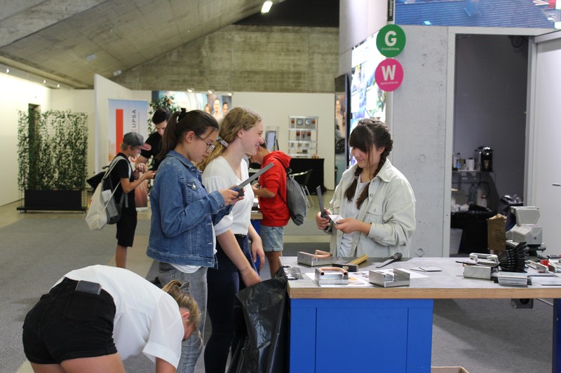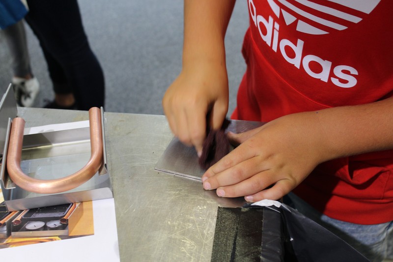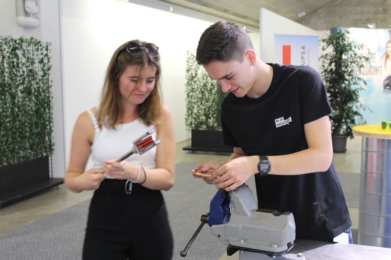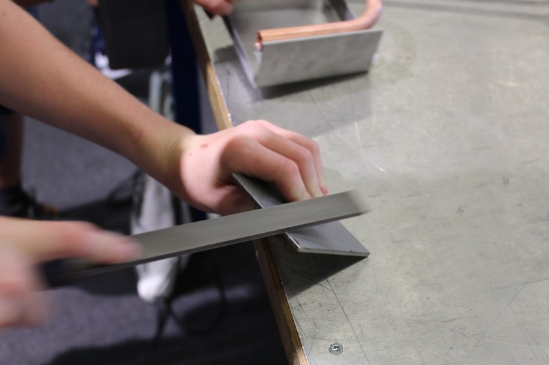 Die Schüler/innen durften auch gleich selbst Hand anlegen und an den Werkbänken und der Abkantmaschine ihre handwerklichen Fähigkeiten prüfen. Das daraus entstandene Werkstück war ein Raclette-Öfeli, welches sie mit nach Hause nehmen durften.