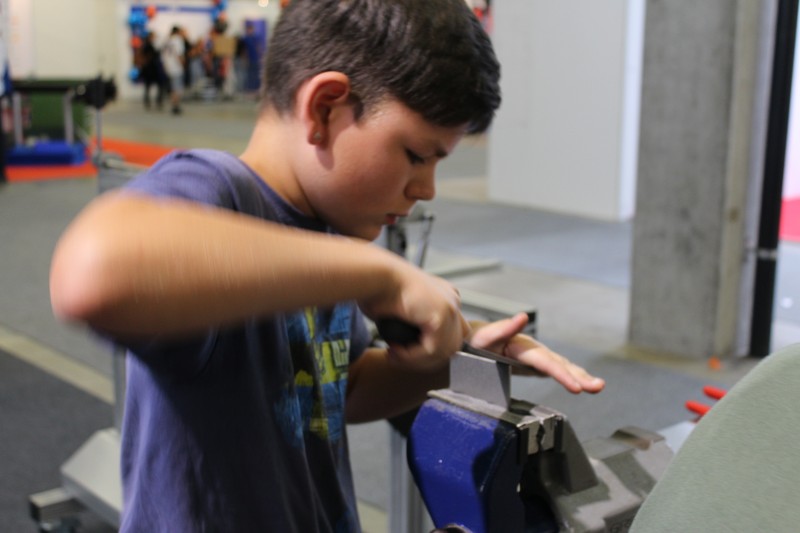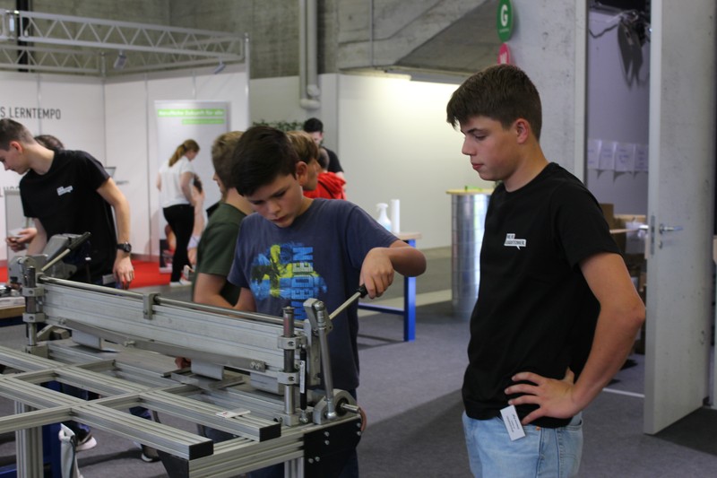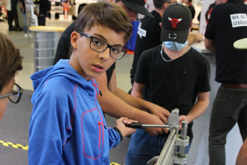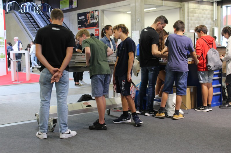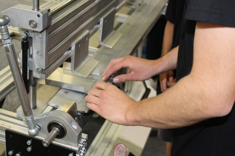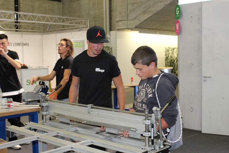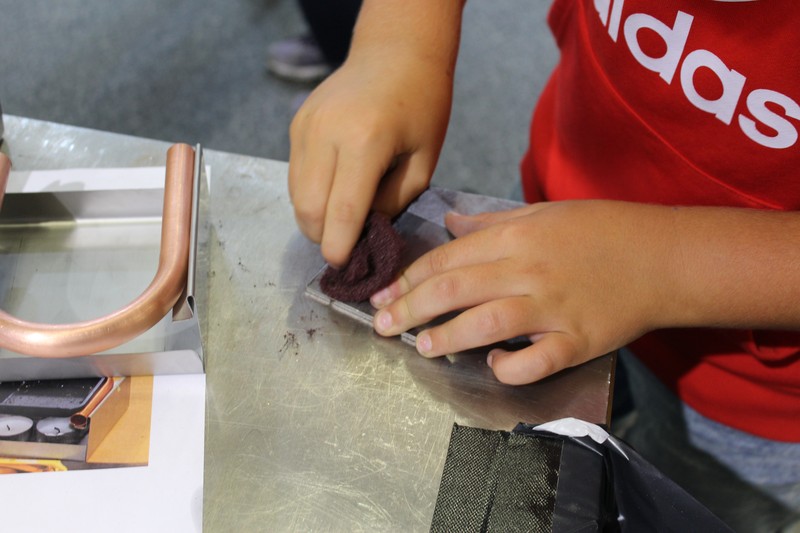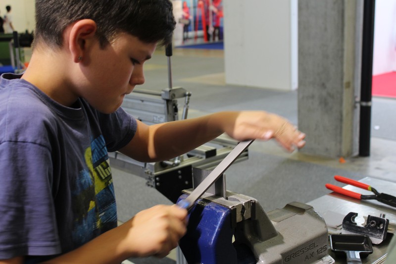 Die Schüler/innen durften auch gleich selbst Hand anlegen und an den Werkbänken und der Abkantmaschine ihre handwerklichen Fähigkeiten prüfen. Das daraus entstandene Werkstück war ein Raclette-Öfeli, welches sie mit nach Hause nehmen durften.